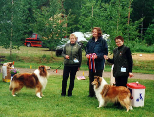 Vielä kerran kiitokset kaikille ja erityskiitokset noista ihanista "Corydon-sukista" - ne pitävät meidän varpaamme lämpiminä tänä talvena ja monena talvena eteenpäin. Kiitos myös Leila Lemetille, hän teki kovan työn ollessaan meidän tulkkimme koko viikonlopun. Vietimme ihanan viikonlopun ja toivomme, että kohta saamme tavata uudestaan. Siihen saakka lämpimät onnittelut kasvattajille, jotka ovat tehneet niin hyvää työtä näiden collieidemme kanssa, jotka ovat tulleet Suomeen sitten vuoden 1983 - olemme ylpeitä, että saamme olla yhteistyössä teidän kanssanne.