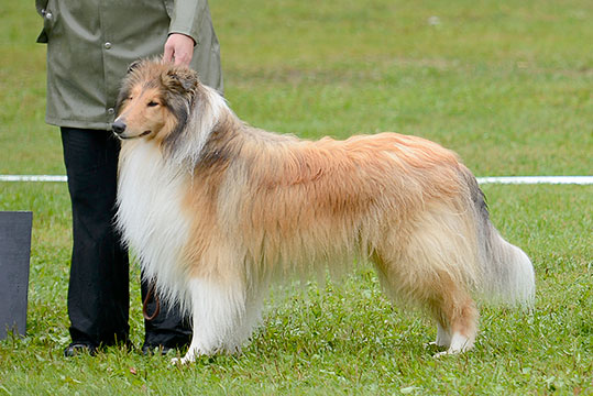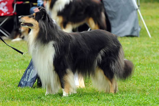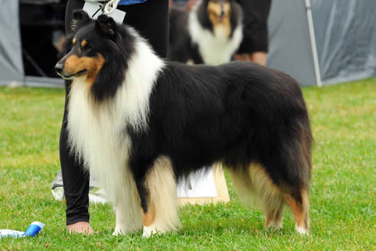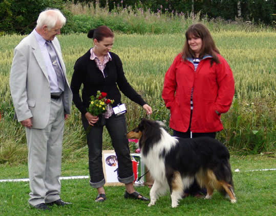 Totesimme tyytyväisinä, että melkein kaikilla oli oikeanlaatuiset turkit, ei löytynyt pehmeitä fluffy-stuffeja! Päivän melkein vaikein tehtävä oli valita Paras soopeli ja Paras tricolour. Olkaa ylpeitä, teillä on todella mustia ja kiiltäviä tricolour-koiria ja soopelikoirilla oli rikas väritys - näin monta hyvää ei Englannista löydy.