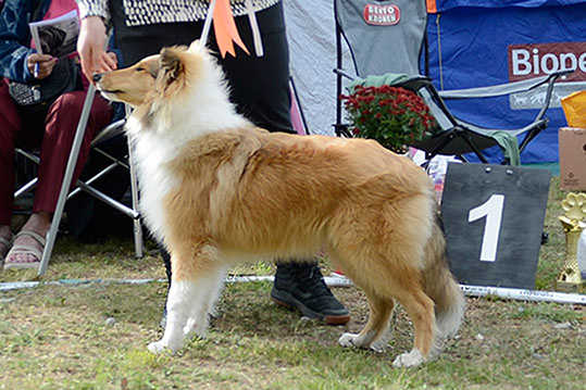 Monta kertaa aikaisemmin, kun olemme yhdessä yrittäneet valita "päivän parasta", olemme olleet eri mieltä ja keskustelleet asiasta! Tällä kertaa olimme täysin samaa mieltä! Päätös oli vähän helpompi, kun uros oli aivan kalju, mutta hän on näköjään laadukas koira, jolla on erinomainen rakenne ja liikkeet, mutta narttu oli aivan täydellinen. Hänessä on kaikki ne yksityiskohdat, mitä klassisessa colliessa pitää olla - hyvin rakentunut runko, ihana pää ja ilme ja vahvat liikkeet - ja hän oli täydessä turkissa ja erinomaisessa lihaskunnossa.